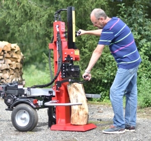 Pro štípání polen do průměru 25 cm dostačující Elektrický horizontální rozdělovač . Dřevo jednoduše vložíte do štípačky, nemusíte ho nijak držet. Pak stiskněte páku a štípací klín se zaboří do kmene jako do másla.