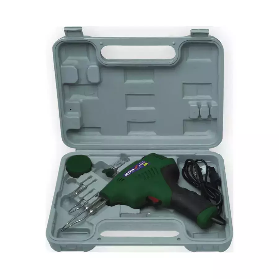 Transformátorová páječka DED7538 je zařízení, pomocí kterého můžeme spojovat vodiče, kabely nebo pájet integrované prvky v elektronických obvodech pomocí pájecího spoje. Přístroj lze použít jak v domácí garáži, tak i u profesionálních elektrikářů a elektroniků. Páječka má navíc zabudované osvětlení, které umožňuje přesnou a precizní práci při slabém osvětlení a na těžko přístupných místech.