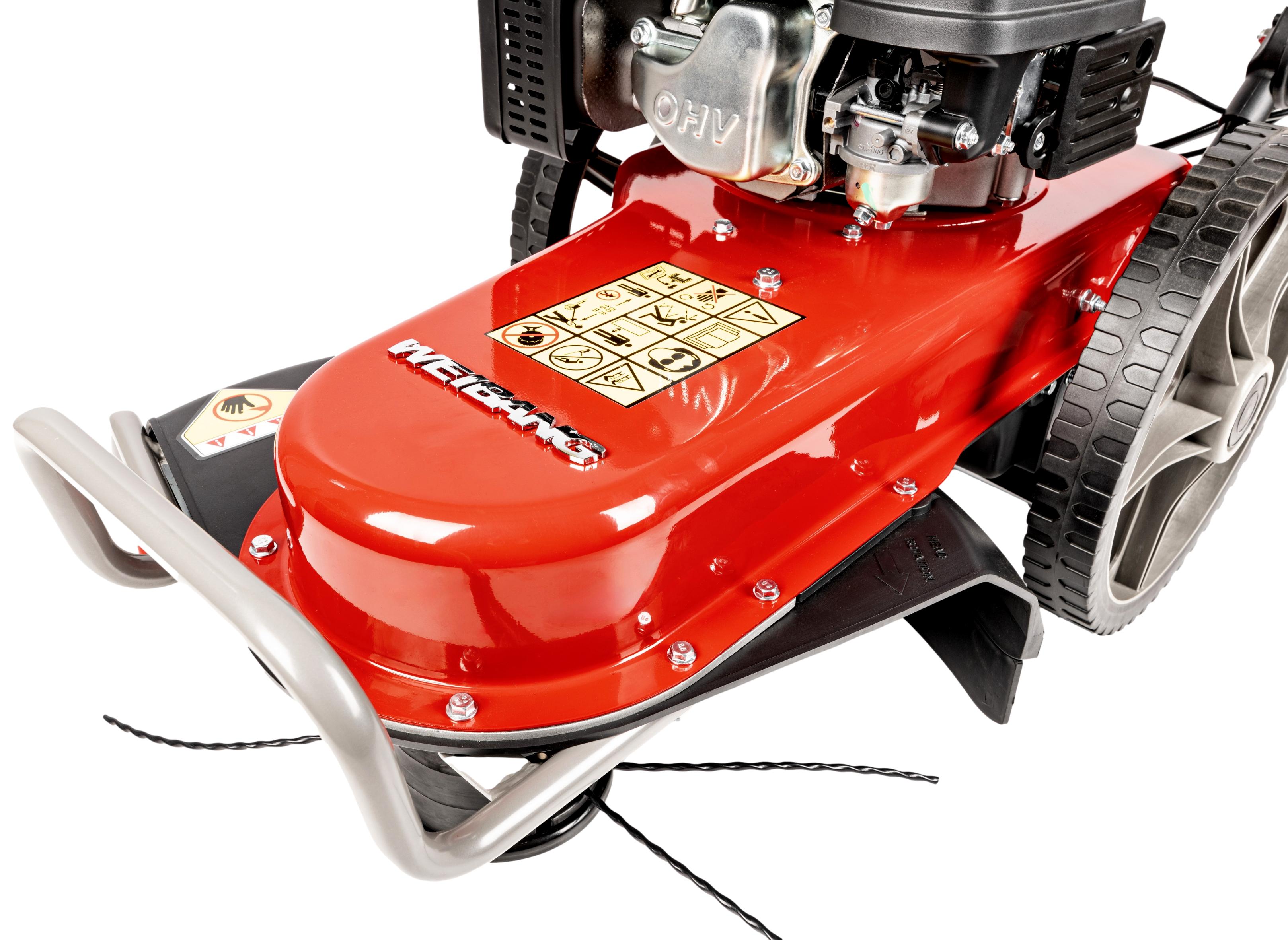 Bubnová sekačka WEIBANG WBLT567SLC je ideálním pomocníkem pro sečení zarostlých ploch. Bez problémů si poradí i s porostem vysokým 1 m. Při sečení je posečená tráva uspořádána do rovnoměrných řádků.