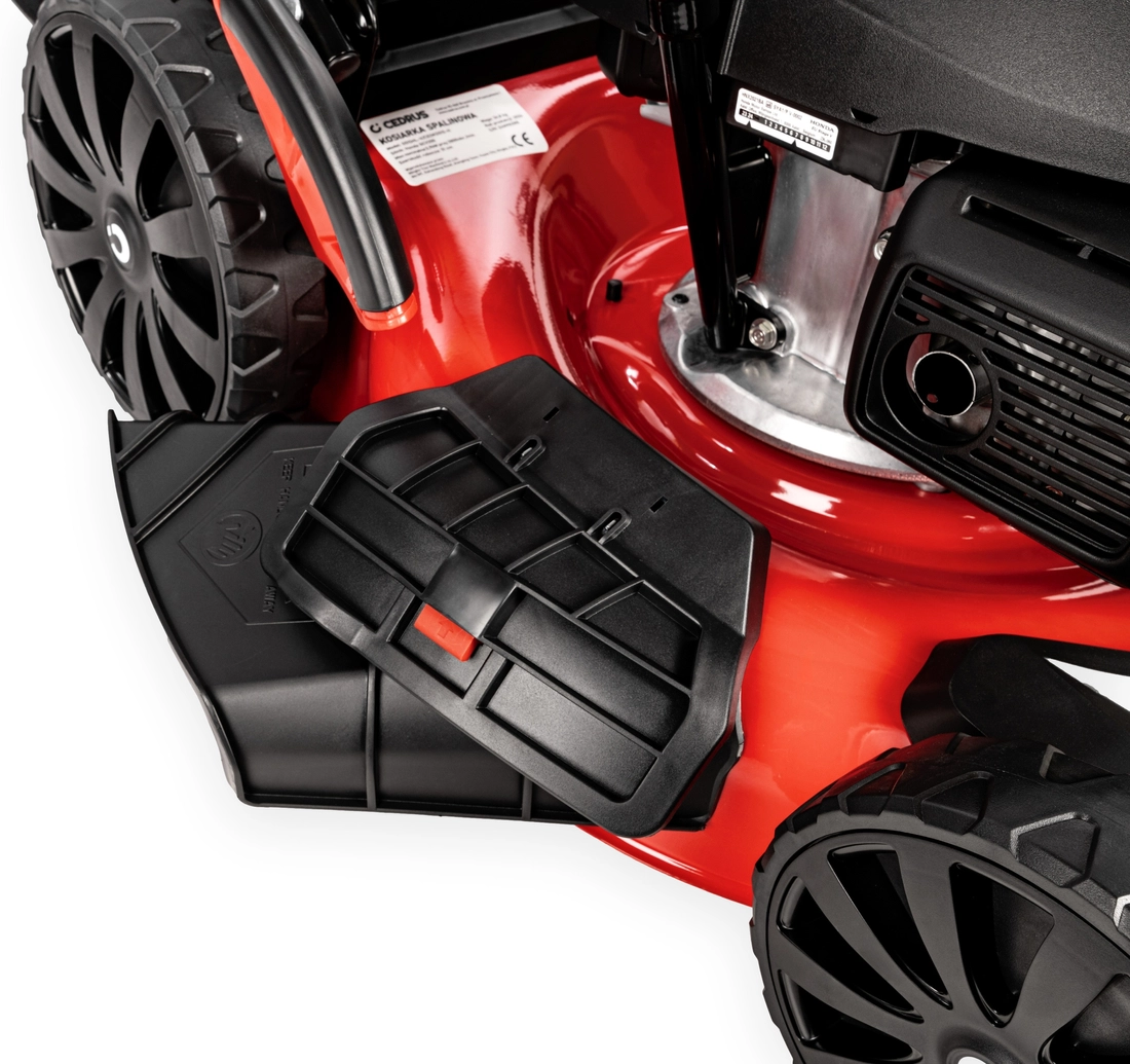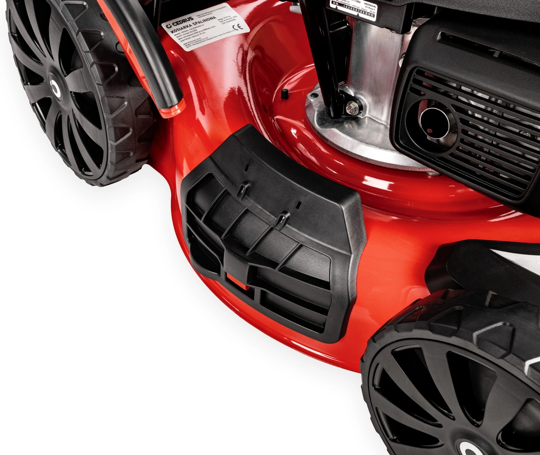 Cedrus KS51S-H je novinkou v naší nabídce. Benzínová sekačka je vybavena výkonným a spolehlivým motorem Honda GCV200. Ocelový kryt s pracovní šířkou 51 cm má vpředu praktické madlo, které usnadňuje zvedání stroje pro čištění po sečení. Centrální nastavení výšky umožňuje zvolit délku stébla trávy, která vám vyhovuje. Velkokapacitní koš je vybaven indikátorem naplnění, který nás informuje o nutnosti jeho vyprázdnění. Velká zadní kola usnadňují manévrování se sekačkou.