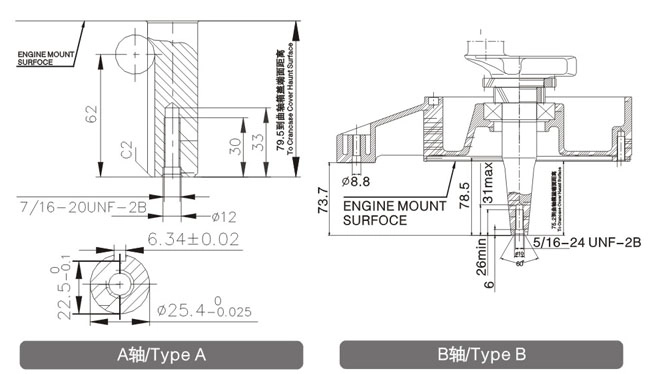 • Typ hřídele: Svislá válcová hřídel; délka: 80 mm; průměr: 25,4 mm / palcový závit 7/16-20UNF hloubka 30 mm