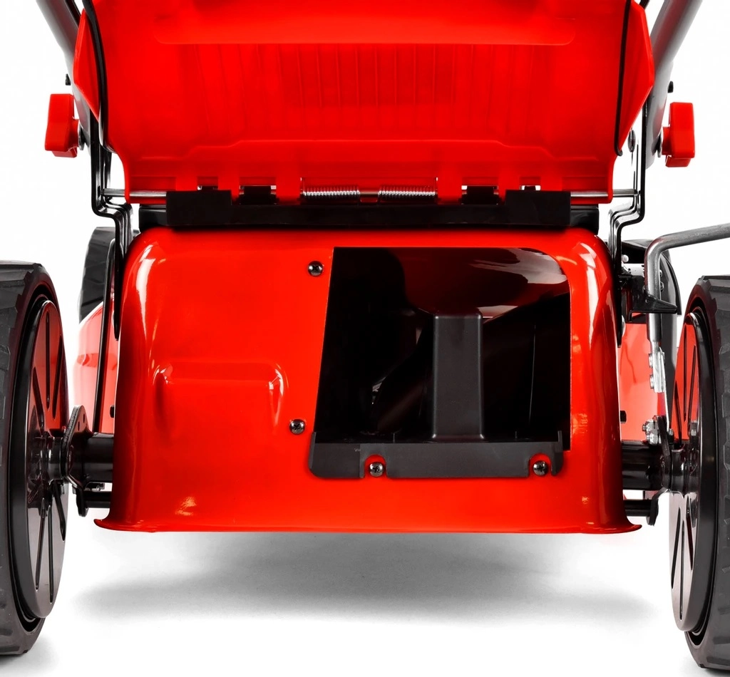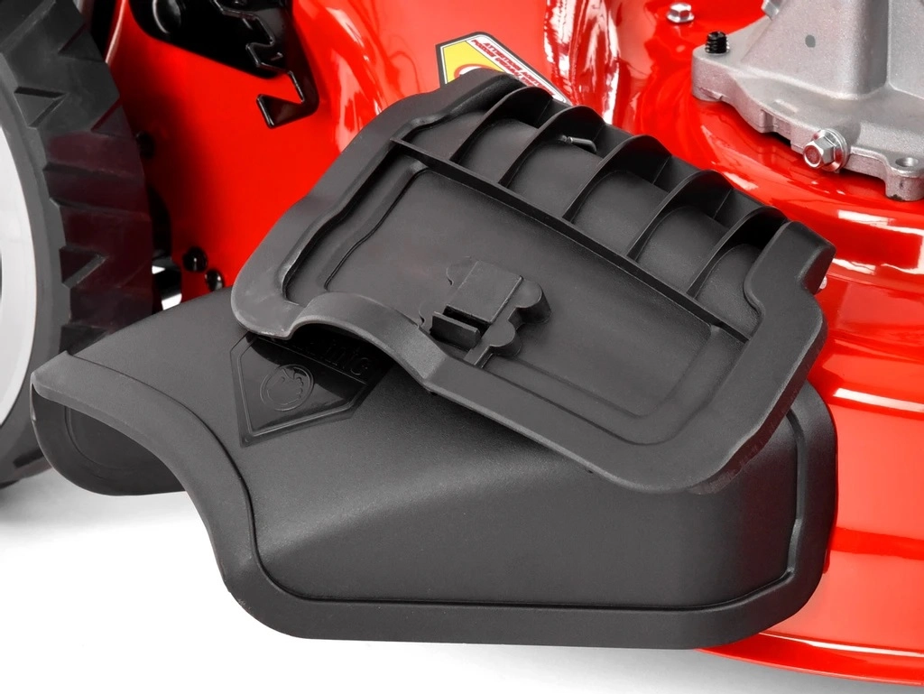 Sekačka má také další funkci boční vyhazování trávy. Uživatel si tak může vybrat, zda bude trávu sbírat do koše, rozmělňovat, vyhazovat do strany nebo vyhazovat dozadu, a to v každém okamžiku provozu. Tato funkce je velmi užitečná pro rozmanité trávníky, kde není nutné sbírat veškerou posekanou trávu do koše. Má velká kola s průměrem 7 cm vpředu a 10 cm vzadu, což usnadňuje manipulaci a manévrování se sekačkou.