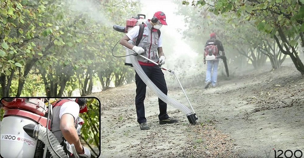 Vysavač Diesel pro kolekci lískových oříšků. Vysavač Cifarelli italské výroby s dvoutaktním motorem o výkonu 5 koní váží celkem 16,5 kg. Průměr sacího potrubí 100 mm poskytuje velkou pracovní plochu a možnost vtahovat velké množství materiálu najednou. Přístroj na sklizeň ovoce ve skořápce.