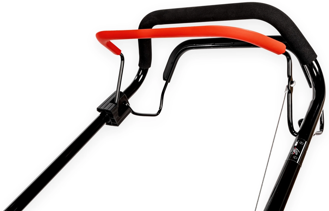 Ocelové pouzdro s pracovní šířkou 53 cm má vpředu praktickou rukojeť, která usnadňuje zvedání stroje pro čištění po sekání.