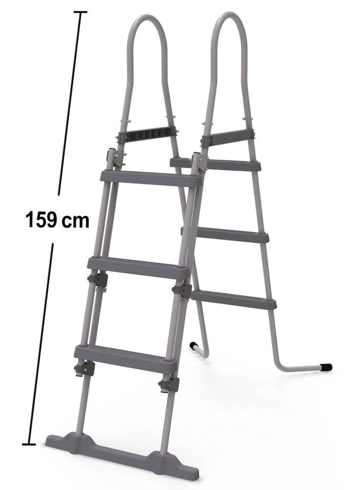 Žebřík pro bazény s výškou stěny do 115 cm. Vyrobeno z ocelového rámu, různých druhů plastů s nášlapnými vrstvami, odolné proti UV záření a bazénovým chemikáliím.