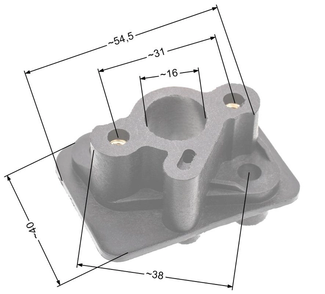 rozteč mezi montážními otvory na straně karburátoru (od okraje k okraji otvoru) cca 36,0 mm,