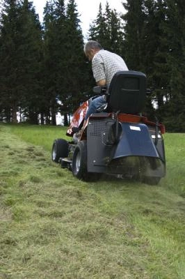 Zadní výhoz na traktoru . Umožňuje rozprostření pokosů na zemi bez jejich shromažďování v zásobníku.