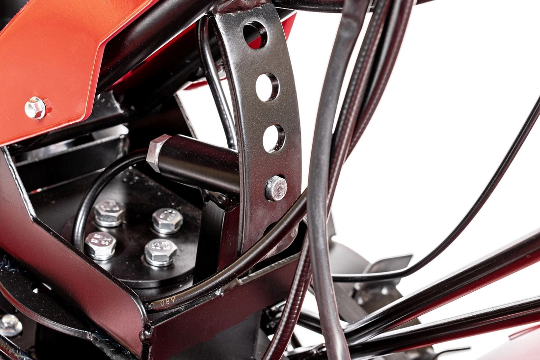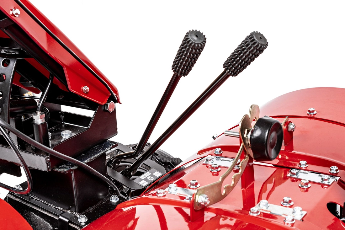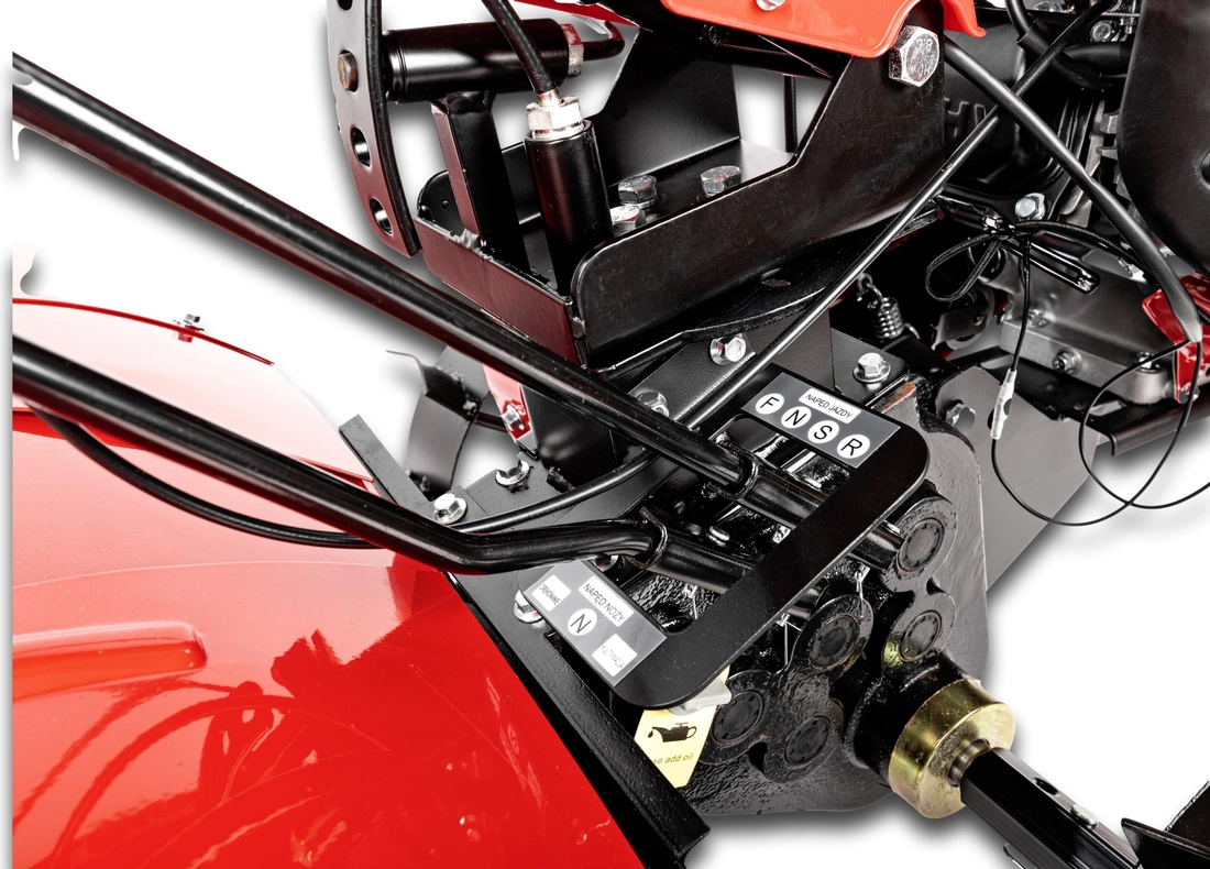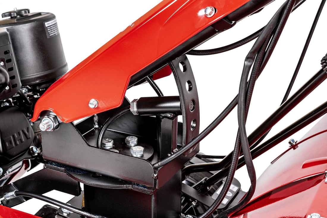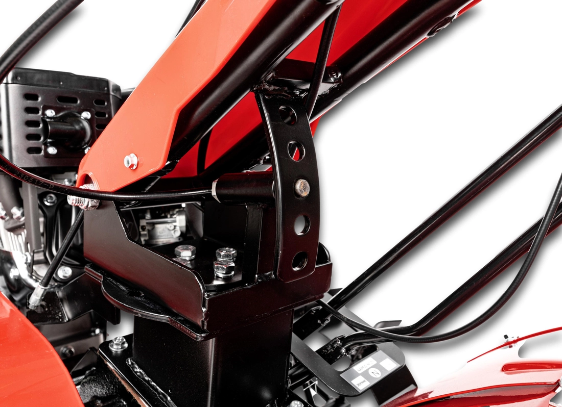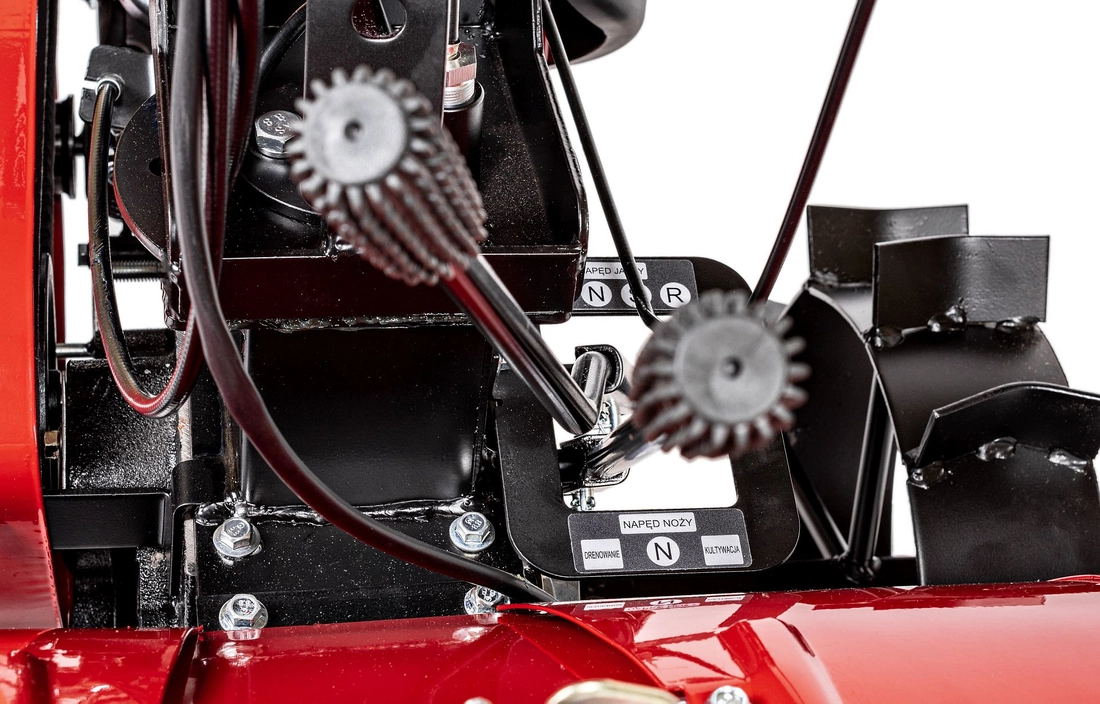 • POHON KOL - Zajišťuje, že se stroj neotřásá, dokonale tlumí síly přenášené pracovními noži, snižuje pracovní úsilí a umožňuje důkladné nakypření půdy již při prvním pracovním přejezdu.