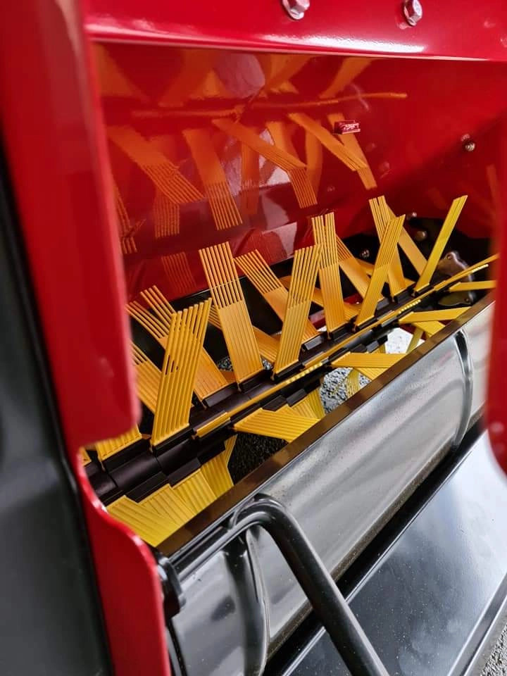 Koš se vyprazdňuje z místa obsluhy pomocí pohodlné páky. Všechny spínače ovládání kartáčů jsou umístěny na přístrojové desce traktoru. Můžeme také snadno nastavit výšku koše, takže můžeme buď posekat pouze trávu, nebo když kartáče spustíme nízko, trávník bude navíc vyčesán.