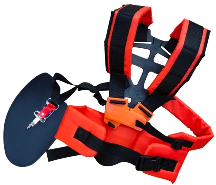 Postroj s bederním úchopem, který umožňuje obsluze stroje volný pohyb. Široké popruhy, výztuhy, nastavitelné uzávěry, takže postroj lze nastavit tak, aby vyhovoval každému operátorovi. Ergonomické rozložení hmotnosti kosy pro snížení zátěže páteře