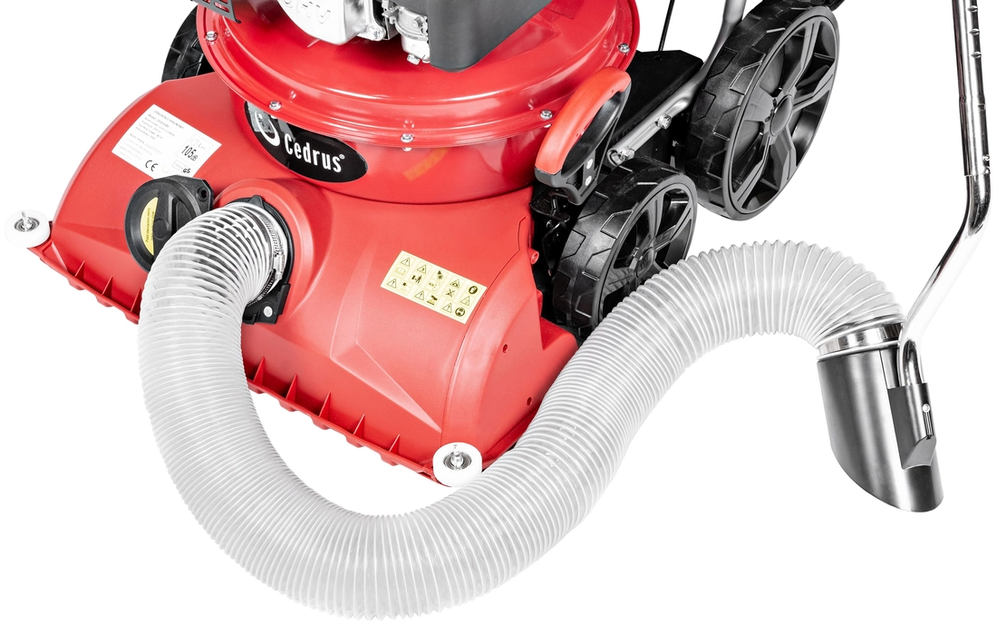 Profesionální vysavač listí s pohonem CEDRUS LV58S je účinným zařízením pro sběr listí a dalších nečistot. CEDRUS LV58 S je profesionální vysavač se čtyřtaktním motorem LONCIN o výkonu 1,5 l 159 cm3 . Vysavač je vybaven také vertikutačním válcem .Vysavač je vybaven sací hadicí, s níž se snadno zbavíte listí i z těžko přístupných míst, například z rohů, pod keři atd. Velký zásobník na odpad o objemu až 150 litrů zvyšuje produktivitu a jeho výškové nastavení usnadňuje práci v obtížném terénu. Je možné vyčistit větší plochu za kratší dobu. Pro zvýšení funkčnosti stroje lze dokoupit zametací válec. Benzínový vysavač Cedrus LV58S 4 v 1 je mimořádně užitečný přístroj při úklidu zahrady. Je vybaven motorem Loncin LC1P65FC. Velký objem koše - 150 litrů - je velmi výhodný, protože nemusíte ztrácet čas častým vyprazdňováním koše. Maximální rychlost vzduchu dosahuje až 270 km/h.