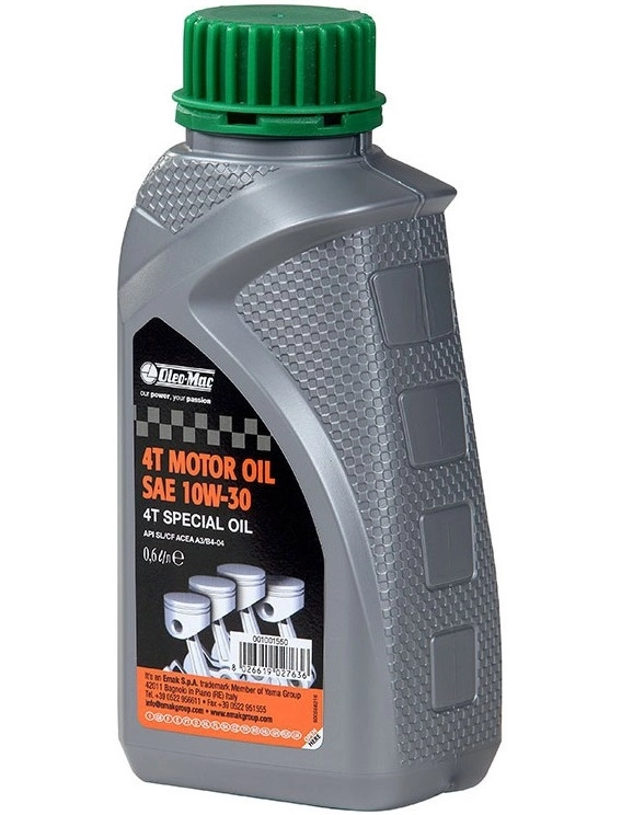 Polosyntetické olej OLEO-MAC4T SAE 10W30, byl vyvinut a navržen pro použití ve čtyřtaktních, vzduchem nebo vodou chlazených spalovacích motorech.