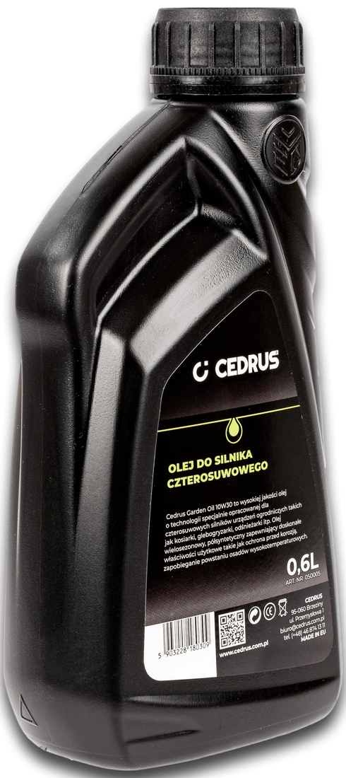 CEDRUS ENGINE OIL 10W-30 0,6L je prémiový motorový olej určený pro čtyřtaktní spalovací motory používané v zařízeních, jako jsou sekačky na trávu, kultivátory, zahradní traktory, sněžné stroje, generátory atd. a všude tam, kde se doporučuje olej s viskozitou 10W-30.Motorový olej pro čtyřtaktní motory vzařízeních na trávu a zahradu (sekačky, traktory, motyčky, vertikutátory, provzdušňovače, zametací stroje, drtiče, vysavače atd.).)