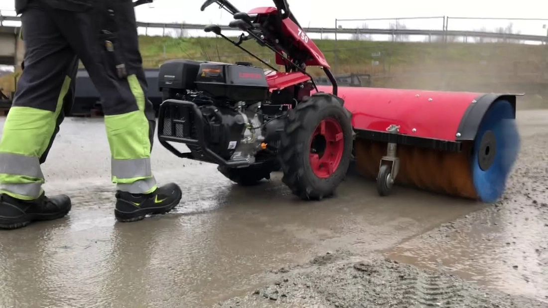Kartáč připojený k jednonápravovému traktoru se používá k zametání ulic, chodníků, parků, zahradních cest atd. Přístroj má ocelovou rukojeť pro nastavení úhlu kartáče a sběr materiálu z levé nebo pravé strany. Dvě malá boční kolečka v zadní části zametacího stroje umožňují snadné ovládání a nastavení výšky zametání.