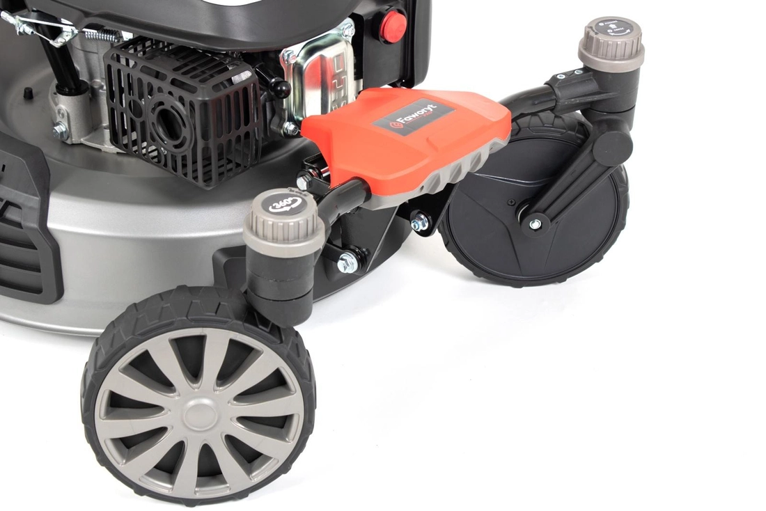 S benzínovou sekačkou Faworyt Pro MP51 SF bude sečení trávníku potěšením. Vestavěný motor OHV o objemu 196 cm3 a výkonu 4,2 k umožňuje mimořádně efektivní provoz. Díky pracovní šířce až 51 cm dokáže stroj pokrýt velkou plochu, a to až do cca.1500 m2 v krátké době. Snadného pohybu je dosaženo díky 6polohovému nastavení výšky sečení od 25 do 75 mm a ložiskovým kolům o průměru 20/28 cm. Benzínová sekačka Faworyt Pro MP51 SF má také robustní kryt s funkcí mytí pro snadnou údržbu. Mezi další uživatelské pohodlí patří boční vyprazdňování odstřižků, funkce mletí a prostorný koš o objemu 65 litrů s ukazatelem naplnění. MP51 SF Favourite má inovativní a velmi praktický systém otáčení předních kol. Díky této funkci se sekačkou velmi snadno manévrujete kolem všech překážek na zahradě. Přední kola je samozřejmě možné zablokovat v poloze pro jízdu rovně.