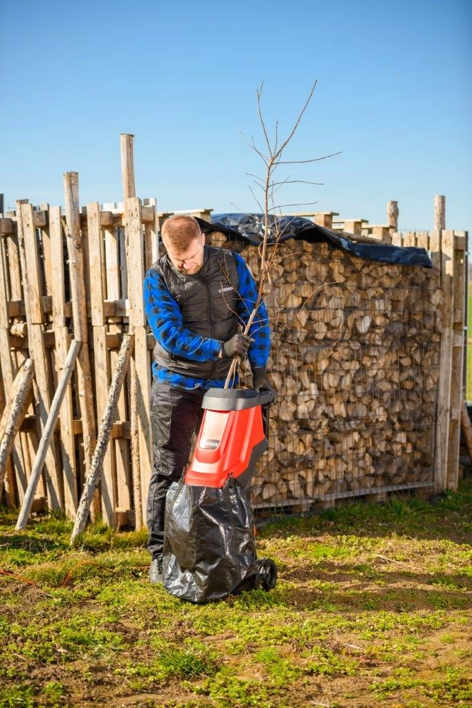 Drtič se dodává s pevným 45litrovým vakem na zbytky drcených větví.