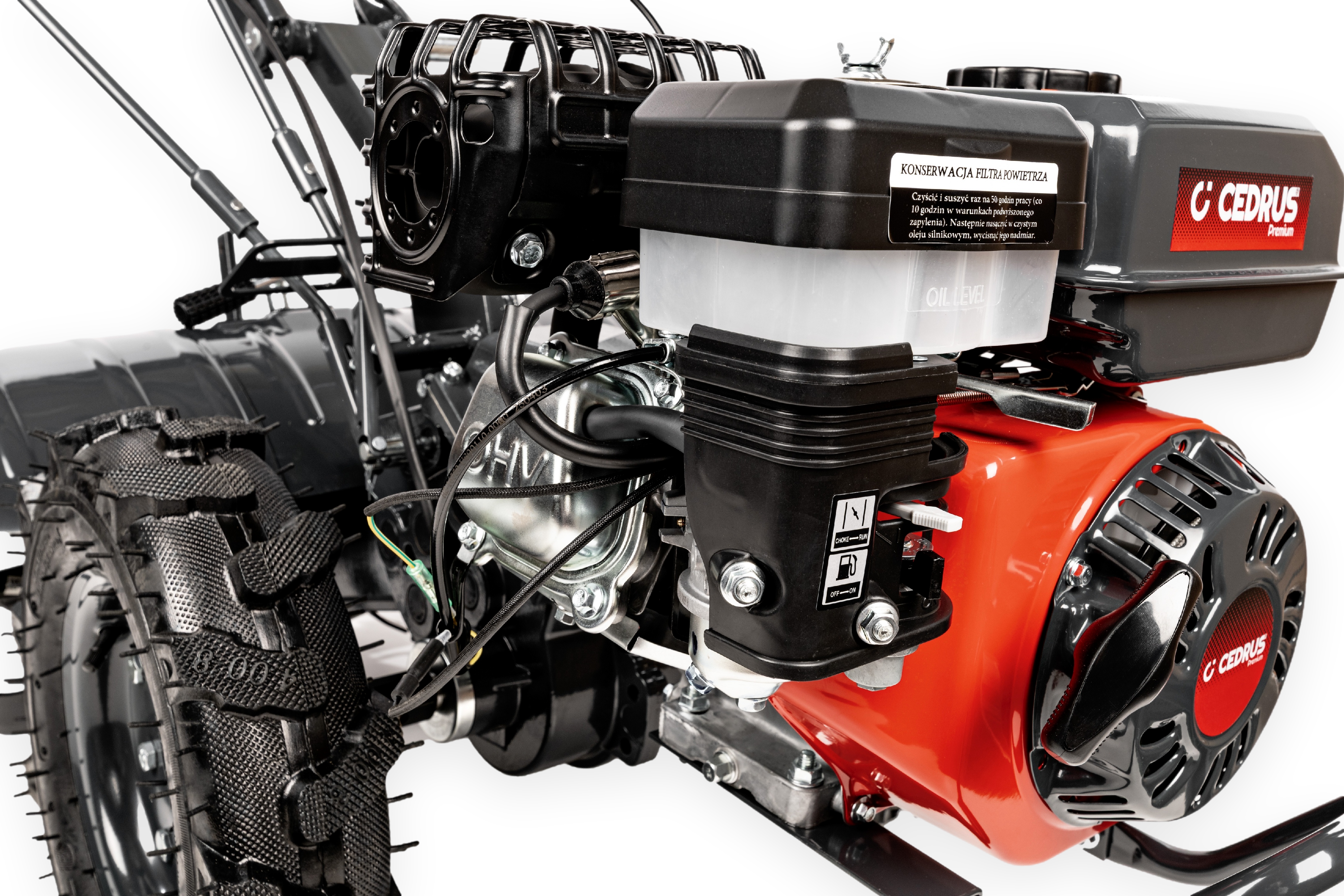 Tiller CEDRUS PREMIUM GLX650 je všestranný a univerzální vůz s pohonem kol, ideální pro práci na zahradách, v plastových tunelech, sklenících a na farmách s řádkovými plodinami. Nejdůležitější výhodou tohoto modelu je možnost dvojího působení nožů. S pohonem kol účinně snižuje vibrace přenášené pracovními noži, což snižuje námahu obsluhy a umožňuje důkladné kypření půdy při prvním průchodu.