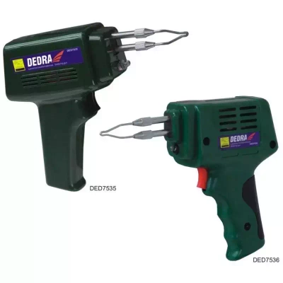 Transformátorová páječka DED7536 je zařízení, pomocí kterého můžeme spojovat vodiče, kabely nebo pájet integrované prvky v elektronických obvodech pomocí pájecího spoje. Přístroj lze použít jak v domácí garáži, tak i u profesionálních elektrikářů a elektroniků. Páječka má navíc zabudované osvětlení, které umožňuje přesnou a precizní práci při slabém osvětlení a na těžko přístupných místech.