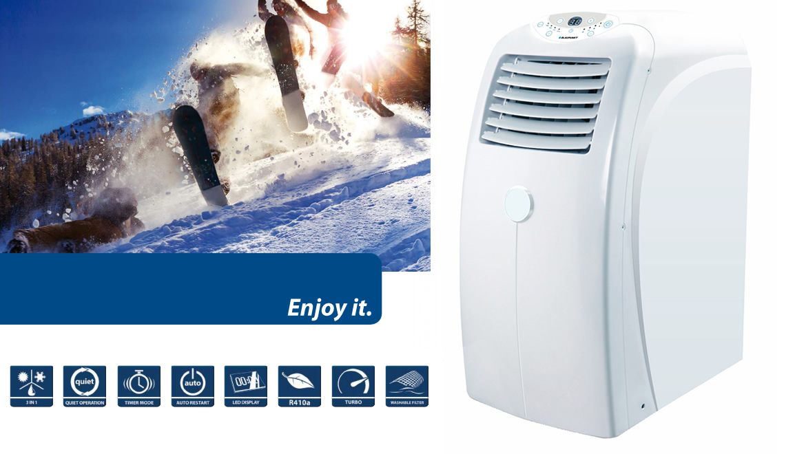 - BLAUPUNKT portable air conditioners are unbeatable. They are distinguished by their unique, timeless design, excellent technical parameters and innovative solutions. It is a combination of German brand quality and modern technical thought.