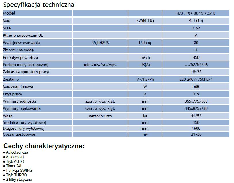 Features of BLAUPUNKT Arrifana15 portable air conditioner