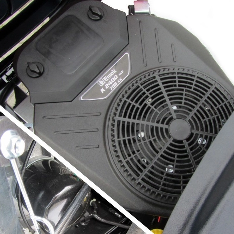 Engine: Emak K2200 22HP OHV 708cc; two cylinders , full pressure lubrication, oil filter