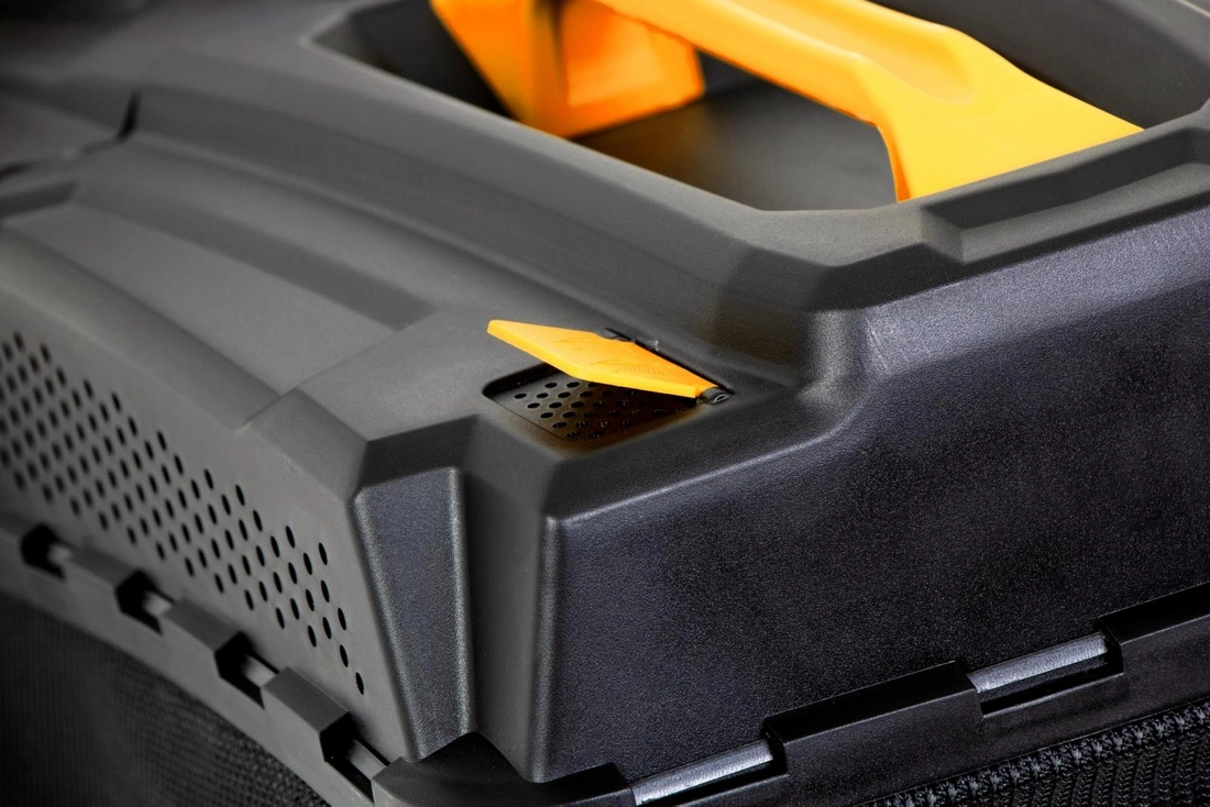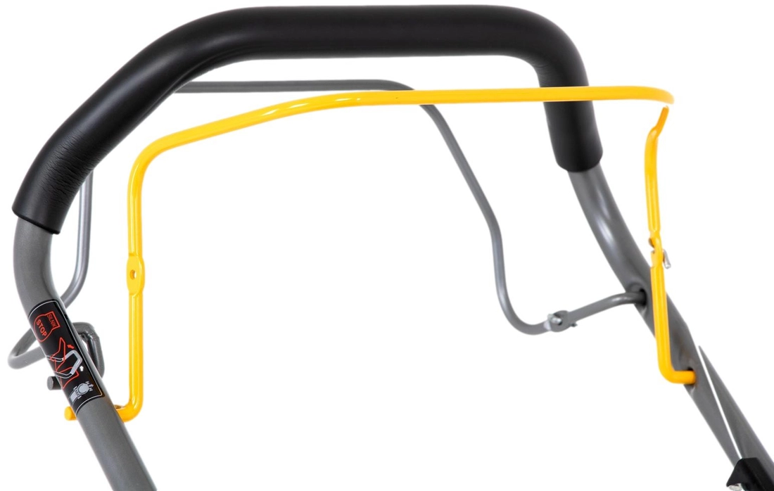 - Top handle with pre-fastened wing nuts, a handle clip from the starter cord and the drive lever and ignition (safety) switch