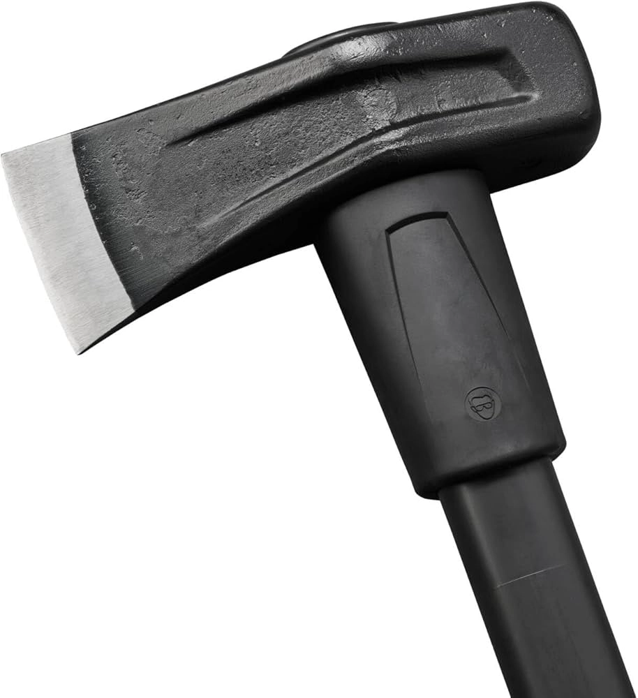 The handle is made of durable glass fiber reinforced plastic. The wood splitting hammer is very sturdy and comfortable in the hand, thanks to its comfortable, non-slip and anti-vibration handle. This is a solid axe that is extremely resistant to wear and tear.