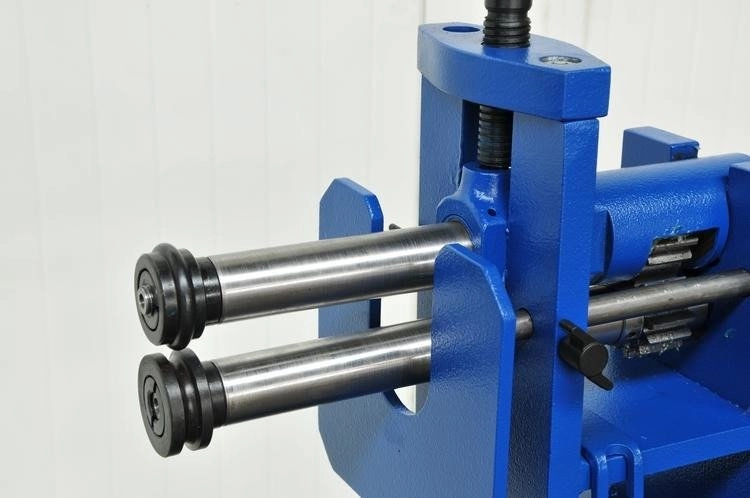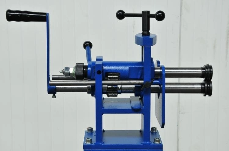 Gouging machine ZB-1.5 - Set on Stand - is used for gouging, curving, folding and bending all kinds of metal sheets up to 1.5 mm thick. The working elements of the gouging machine are sets of rollers mounted on rollers. Each set of rollers makes a different profile out of sheet metal. Rollers are mounted on two rollers. Adjusting the distance between the two rollers and the longitudinal displacement of the top roller relative to the bottom roller affects the shape of the profile of the gouged plate.Gouging machine ZB-1.5 is a device used for processing steel sheets up to 1.5 mm thick, copper, aluminum, etc. Ideal for bending the edges of sheet metal, crimping them or spinning them out. The broad spectrum of performance ensures application in a wide range of industries from sheet metal work for renovation, to finishing gutter system components, and all kinds of ventilation fittings.