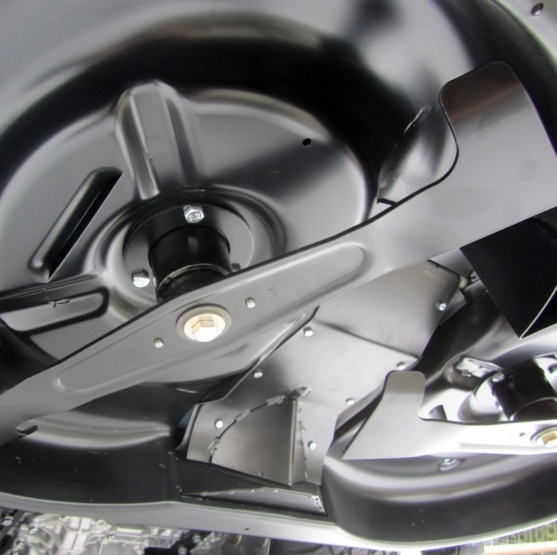 - Maintenance operations on the cutting disc are simple and quick. The wide wheels have specially designed treads that do not damage the grass on which the mower rides.