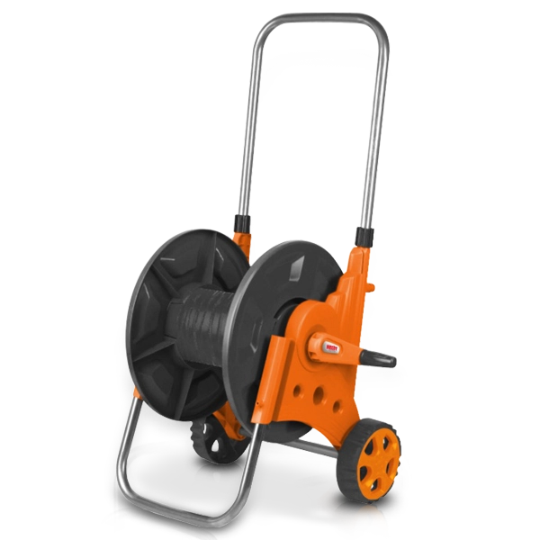 - Garden hose reel cart with which you can easily store and transport your garden hose.