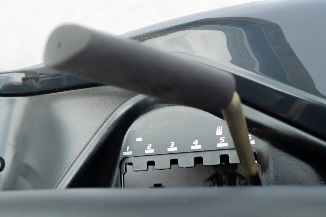 Speed is adjusted using a double pedal acting directly on the hydrostatic drive. With this solution, you can change the direction of travel and control the speed of travel also when emptying the basket.