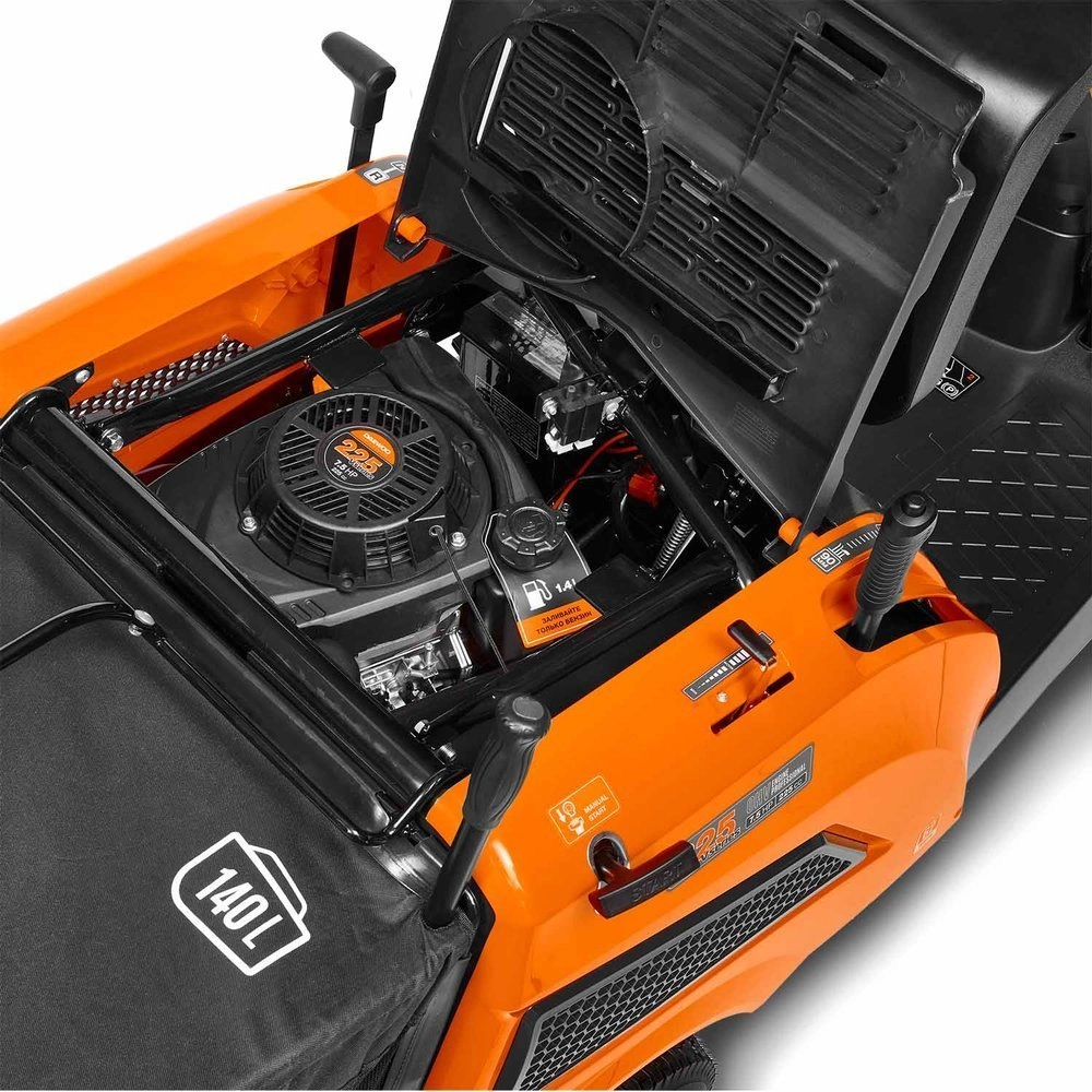Larger garbage can capacity means less frequent need to empty it while mowing. Basket with capacity 130l can be emptied while driving with a convenient lever.
