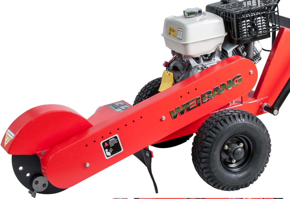 Weibang log cutter with Honda WBSG13H engine is a powerful machine for tree trunk removal and grubbing. Cutter with 11.7 hp (26.5 Nm) and 389 cc capacity. The Honda OHV horizontal-shaft engine is a four-stroke, overhead-valve power unit used in machines that require a lot of power, and has many features that are designed to improve the quality of work.