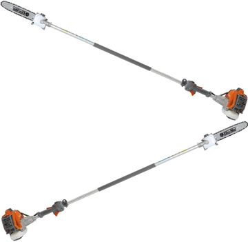 OLEO-MAC PPH250 - OLEO-MAC PPH 250 Chainsaw Lopper it has a 2.2-meter boom. This allows trouble-free work with a working range of up to approx. 3.5 meters. It is worth mentioning that the equipment guide is 25 cm long, and the device is ideal for carrying out small jobs, including in places with difficult access. OLEO-MAC PPH250 chainsaw very easy to operate and run. The equipment is very lightweight. OLEO-MAC PPH250 Chainsaw due to its construction it is designed to remove dry and unnecessary branches during tree pruning. Thanks to the EMAK two-stroke engine with a 25.4 cm³ capacity and 1.2 horsepower we are not limited by any power cables. The added chain is 3/8", 0.50mm in size. Operation is not dependent on access to the mains and is much safer, as you don't have to constantly weigh down the power cord. OLEO-MAC PPH250 chainsaw allows you to work stably from the ground without a ladder. Guide 25cm allows you to cut thick branches. Height chainsaw The OLEO-MAC PPH250 allows for a really long reach, ensuring safe work without the use of a ladder. Excellent balance enhances cutting convenience. Handy handle at which the switch is located.