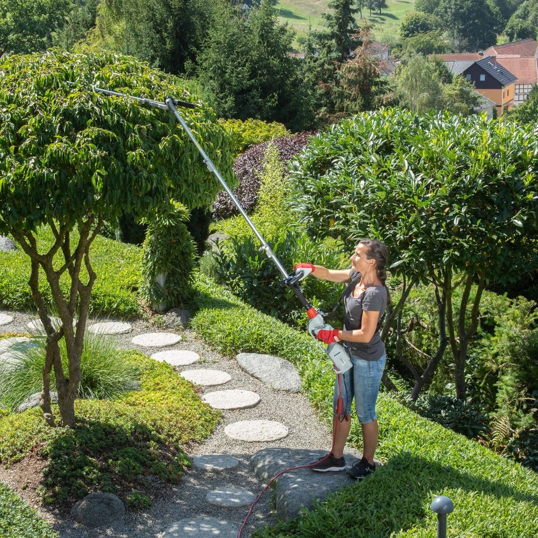 • IKRA IECH 1000 saw chain saw cutter hedge cutter secator hedge cutter electric hedge cutter on a telescopic boom 2 in 1 lightweight device on a boom for cutting hedges of great height and any angle without a ladder.