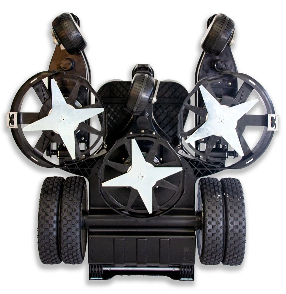 Patented Yard Series rear wheel system improves mowing of wet and soft areas. The conical design of the wheels makes their contact with the surface less on dry ground and more on wet ground , which significantly increases the device's grip, performance and reliability. The robot is equipped with three independent brushless motors of the latest generation. They allow you to manage areas of up to 20000 m2 with slopes of up to 45%.