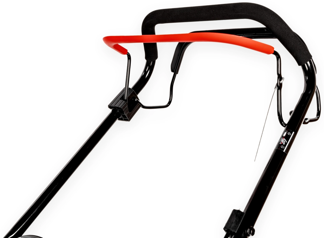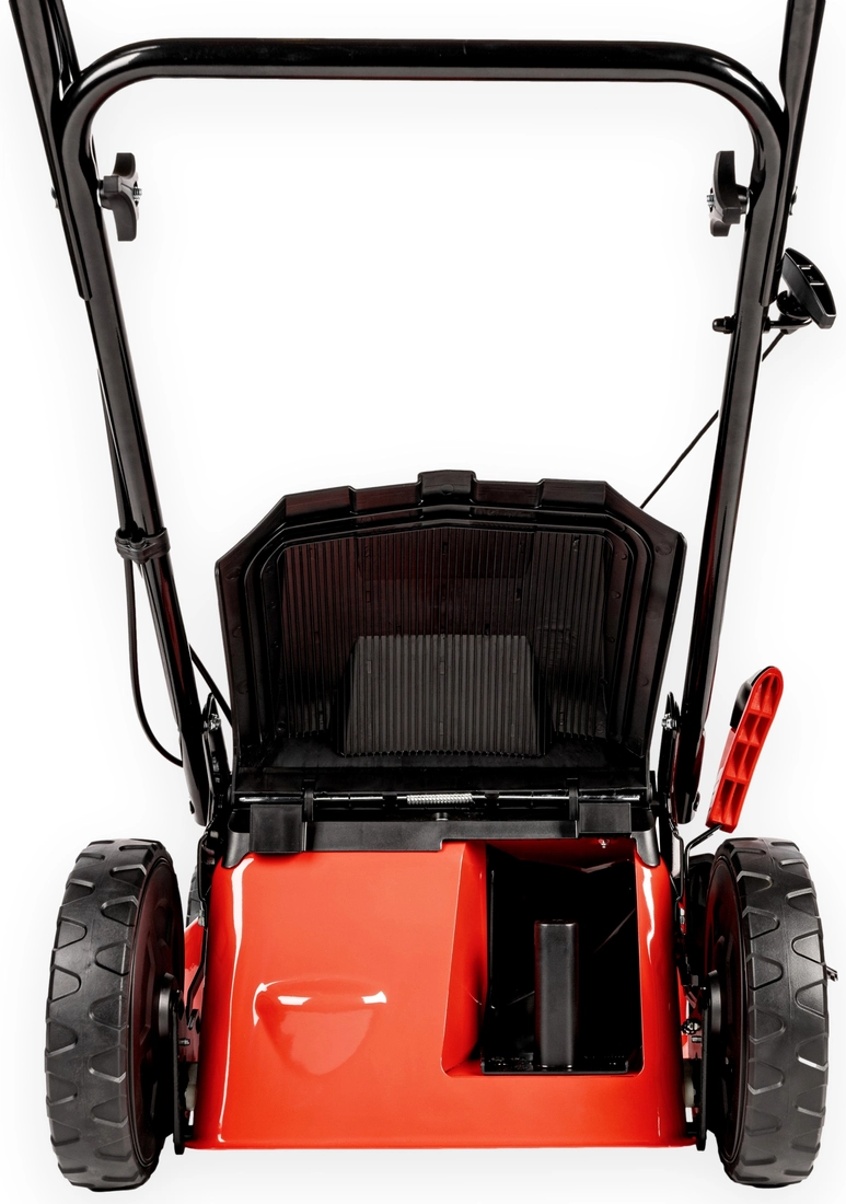 Steel casing with a working width of 48 cm has a convenient handle in the front part, which makes it easier to lift the machine for cleaning after mowing.