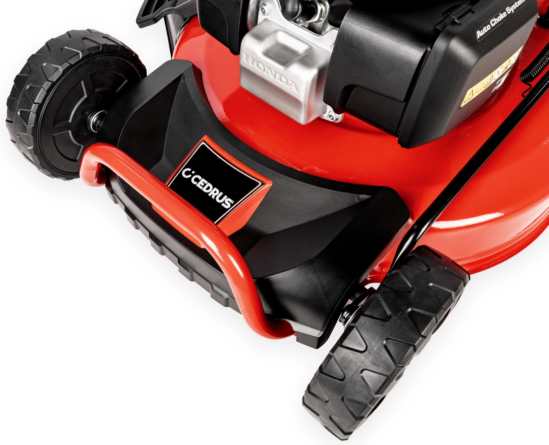 Cedrus KS56S-H petrol mower is a model equipped with a drive. All components of our new KS series mowers have been carefully selected and tested so that every user can enjoy their reliability and quality. The KS56S-H mower has a 4.1kW engine at 2,800rpm, a 65L capacity basket with a fill indicator, central height of cut adjustment, a mower chassis wash coupler. The mowing system housing is made of steel and has a working width of 56cm. Ease of maneuverability is provided by the large rear wheels and good balance of the machine. All wheels have bearings.