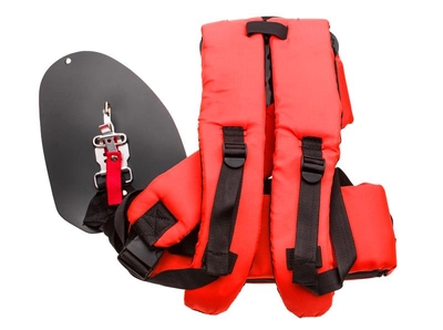 Harness for petrol scythes with waist belt. Easy adjustment and fit to the backrest.