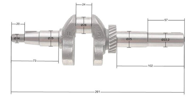 - Loncin 1P61FE LC1P65FE(B) 62 mm crankshaft ORIGINAL PART 130290413-0001
