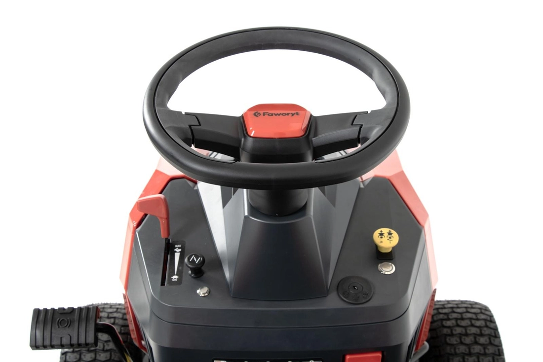 Advanced technology solutions Thanks to its hydrostatic transmission with reliable Japanese Tuff Torq gearbox, the Faworyt TR102 HV ensures smooth and precise driving. Minimum turning radius of just 45 cm for easy maneuvering in hard-to-reach areas and around obstacles. Large fuel tank with a capacity of 8.5 liters allows for prolonged operation without frequent refueling.
