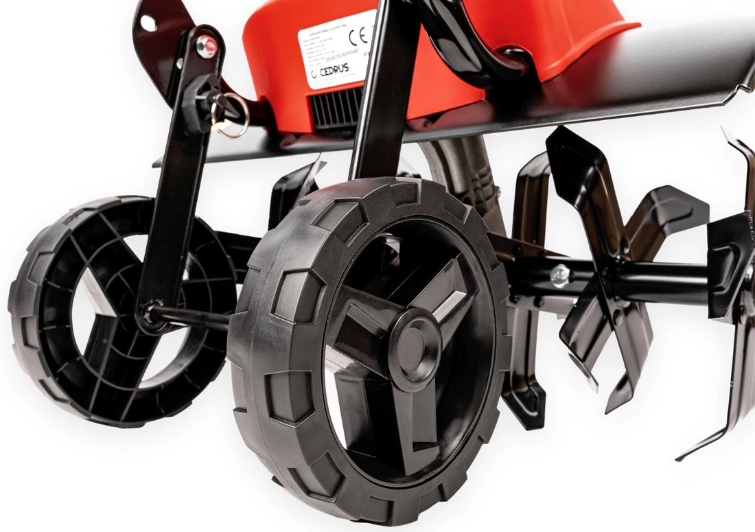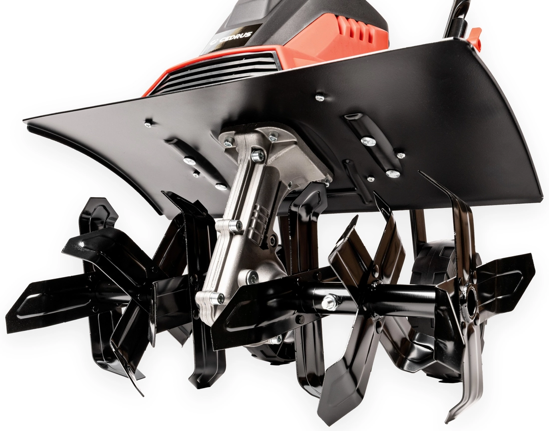 CEDRUS GE45 electric soil cultivator is a device for the care of both a home garden and a plot of land with access to electricity. An ideal indispensable item for those looking for equipment for loosening and leveling large areas especially difficult to cultivate compacted and clay soil. Equipped with a 1500W electric motor that drives the powerful blades. The low weight of the CEDRUS product ensures easy manoeuvrability of the device and does not require the use of additional force, which ensures high comfort of work. CEDRUS GE45 electric soil cultivator is an excellent device with very good value for money. Its robust design and excellent performance will make it the perfect choice for any garden owner. Allows you to quickly and efficiently loosen the soil and prepare the ground for sowing lawn or vegetable crops. At the same time, the tiller mixes the soil, so we can use this function to mix the soil with manure, fertilizer or compost and conveniently topdress our crops. The machine also has practical fenders to protect the operator from chipping rocks and mud.In addition, the rotary blades stir the soil, so we can mix it with manure, fertilizer or compost, for example, and immediately nourish the area quickly.It arouses the interest of those who value convenience and perfectionism in taking care of their garden.