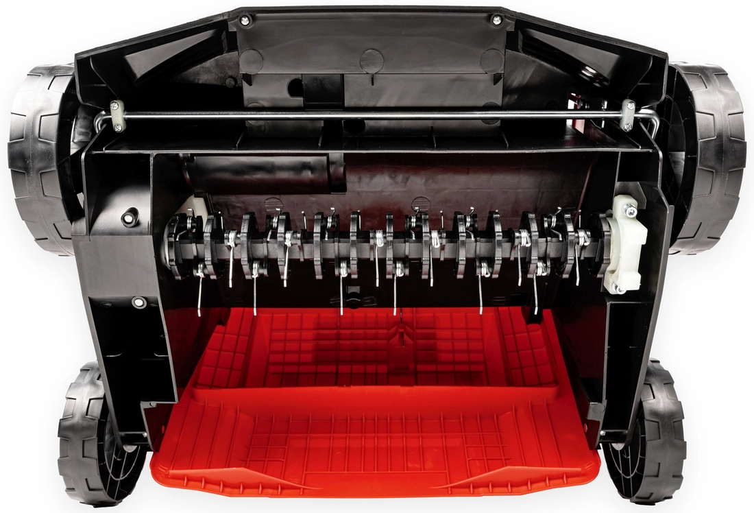 - With wires - aerator - raking the grass , collecting leaves, gently aerating the soil. Powerful motor 2000 W and optimum torque easily handles any type of lawn. The device has a 6-step working depth adjustment from +4 to -12 mm. The scarifier has central height adjustment, so that we can set the working level with a very high degree of accuracy adapting it to the specific lawn.