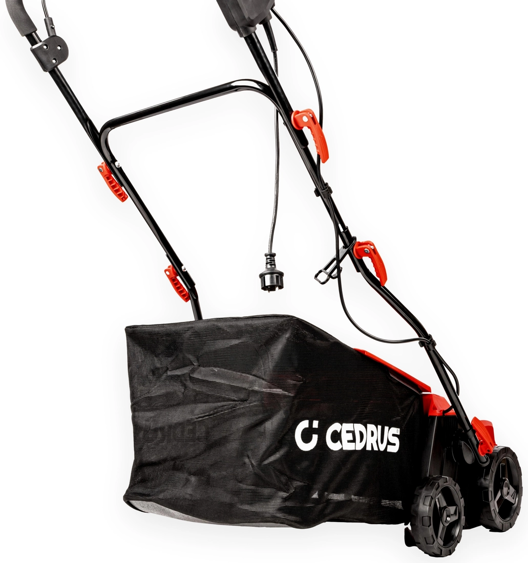 - CEDRUS WE40 Lawn Aerator is a powerful device with a power of 2000W and a width of 40cm. The capacity of the basket of the CEDRUS WE40 electric scarifier is 55 liters