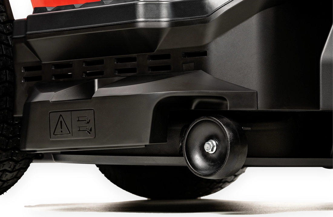 Hydrostatic transmission starts with the pedal without having to take your hands off the wheel. Reinforced and shielded bearings and cutting knife support, designed for durability even under very intensive use. Cutting height adjustment system is controlled by a spring that allows raising and lowering effortlessly with a lever. Significantly reduced turning radius makes it easier to move around plants and ornamental shrubs without unnecessary and cumbersome reverse gear maneuvers or having to reposition the tractor