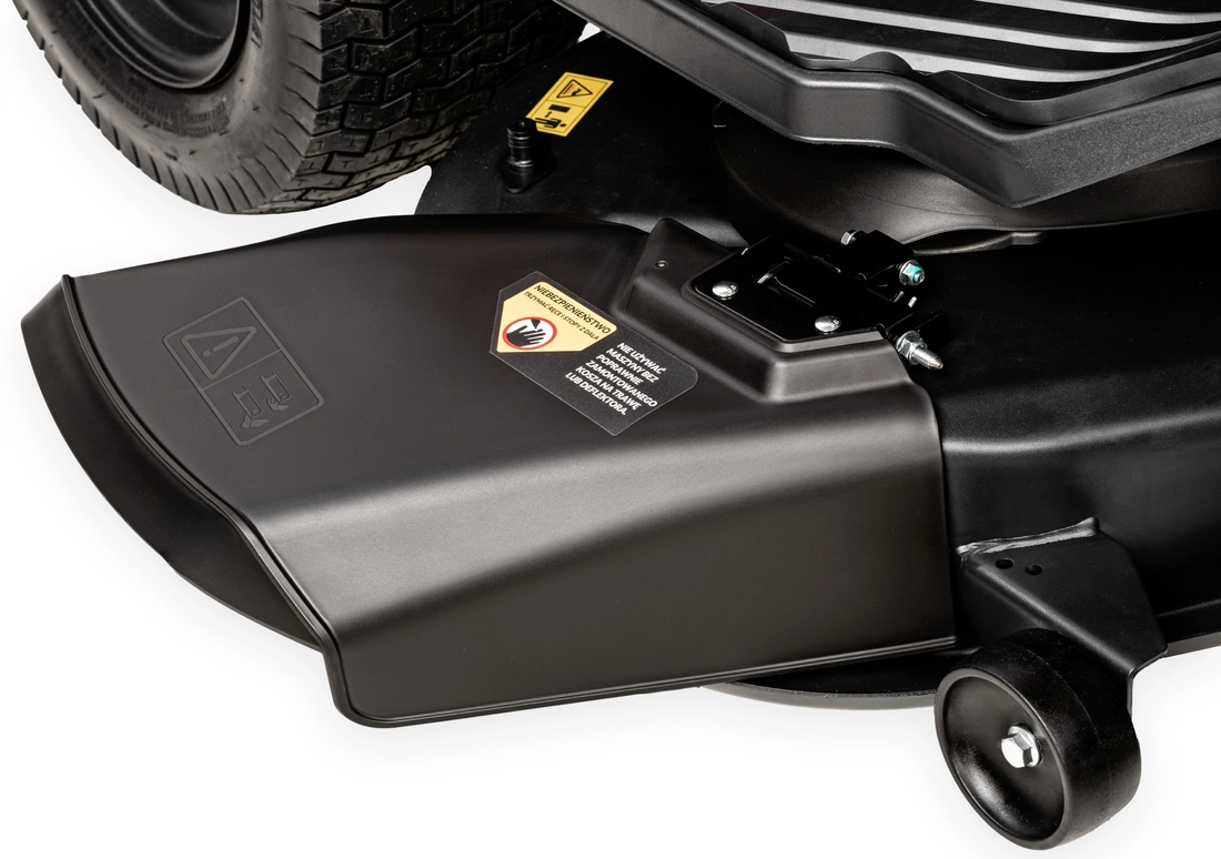108 cm wide cutting system with two blades and electromagnetic engagement allows you to mow extensive lawns quickly and efficiently. The tractor offers side discharge and optional mulching, so the user can adjust the machine's operation to suit current needs. Reverse mowing function makes it even easier to maneuver in more difficult areas.