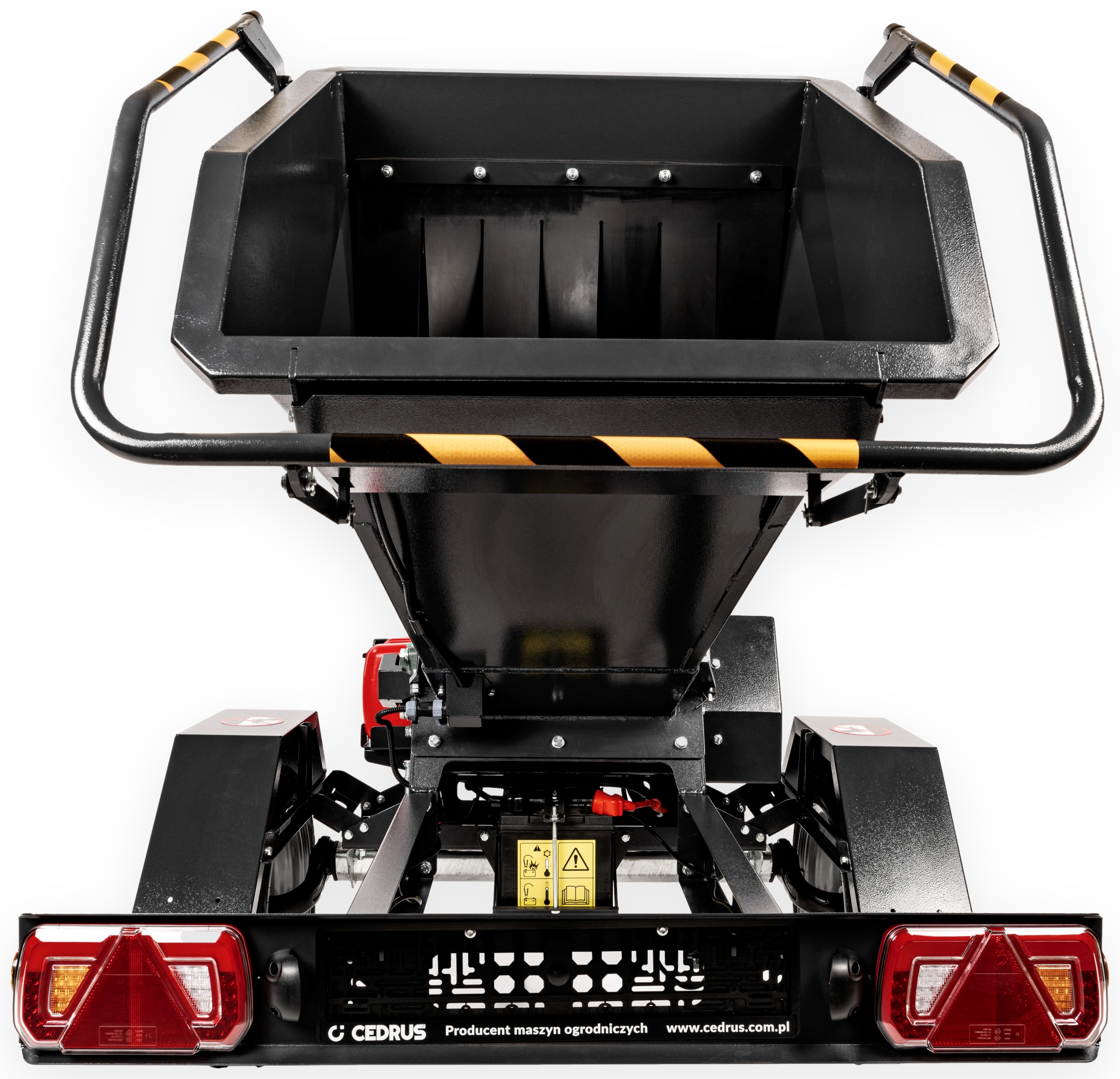 Cedrus Shredder R13 proves that modern engineering and innovative solutions can significantly increase the efficiency and comfort of garden tools. With this model, gardening has never been so easy and fun, and your garden challenges will quickly turn into a real technological adventure. CEDRUS R13 is equipped equipped with a road-approved trailer, which makes it easy and safe to transport the shredder on public roads. The machine is mounted on an approved ALKO chassis so that it can be registered as a light trailer and be legally driven on public roads.