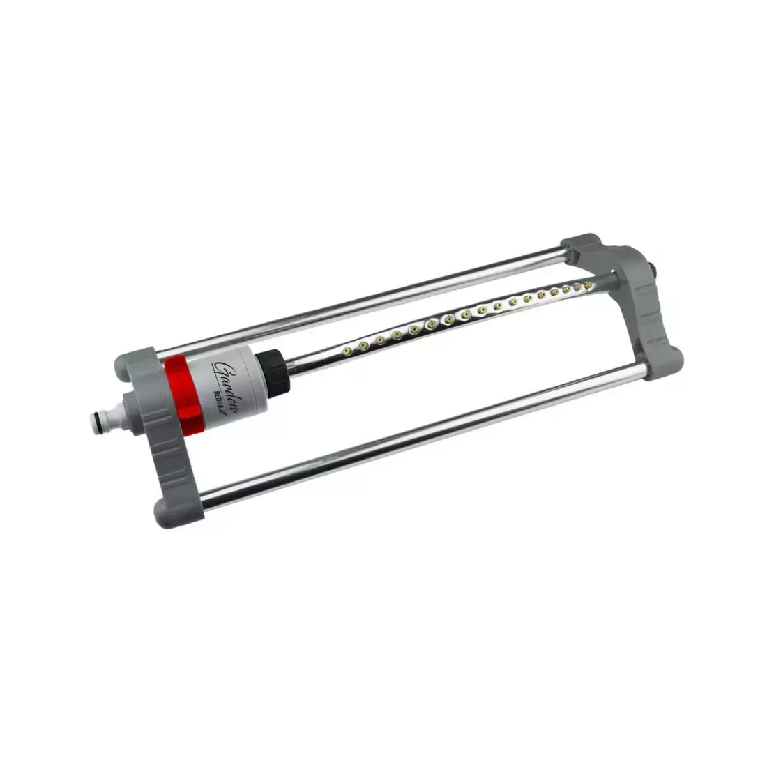 The body of the sprinkler is made of durable ABS plastic, the connectors and the spray bar are made of aluminum. The maximum irrigation area is 380m2. Water connection via 1/2 quick-connect coupling".