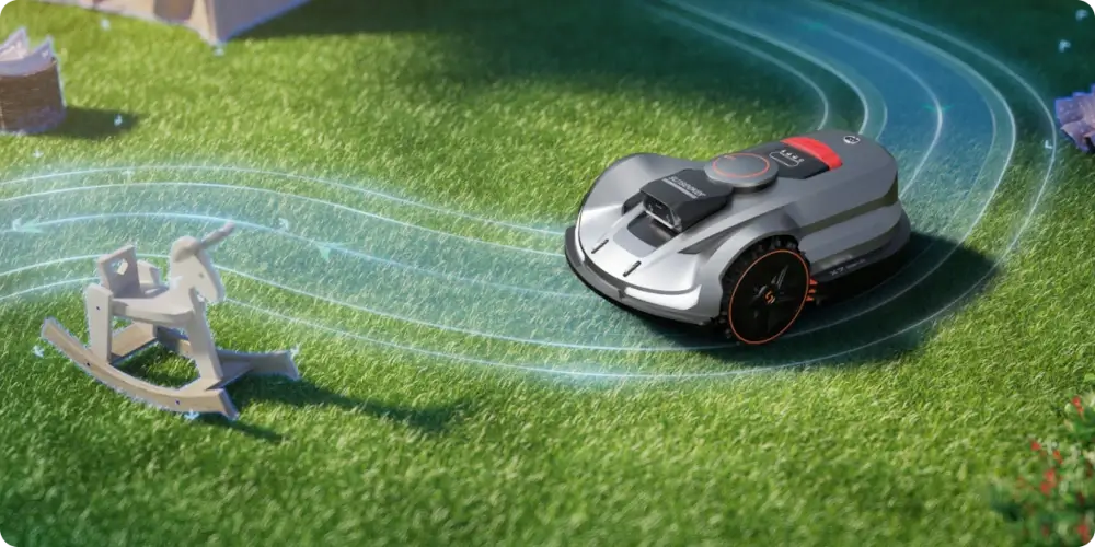 Sunseeker X3i Gen 2 wykorzystuje Vision AI z kamerą binocular (stereoskopową) w trybie wizji dziennej. Kamera stereoskopowa pozwala robotowi „widzieć” głębię, czyli lepiej oceniać odległość do obiektów na trasie, a to bezpośrednio przekłada się na kulturę pracy. Zamiast wjeżdżać w przeszkodę i dopiero wtedy reagować, robot wcześniej rozpoznaje, że przed nim znajduje się obiekt i potrafi zaplanować płynny manewr ominięcia. W praktyce oznacza to mniej szarpanych zatrzymań, mniej gwałtownych korekt oraz bardziej stabilne koszenie w ogrodzie, który jest normalnie użytkowany: z meblami tarasowymi, donicami, zabawkami czy elementami dekoracyjnymi. Dla użytkownika to także większy komfort – robot koszący bez przewodu pracuje konsekwentnie po mapie, nie traci rytmu koszenia i rzadziej wymaga ręcznej interwencji, bo lepiej dopasowuje przejazdy do realnych warunków w ogrodzie. Warto też dodać, że w modelach X3/X3i oraz X5/X5i zastosowano dodatkowe rozwiązanie do wykończenia obrzeży: tarczę do docinania krawędzi z trzema żyletkami, co pozwala na koszenie przy samych granicach trawnika.