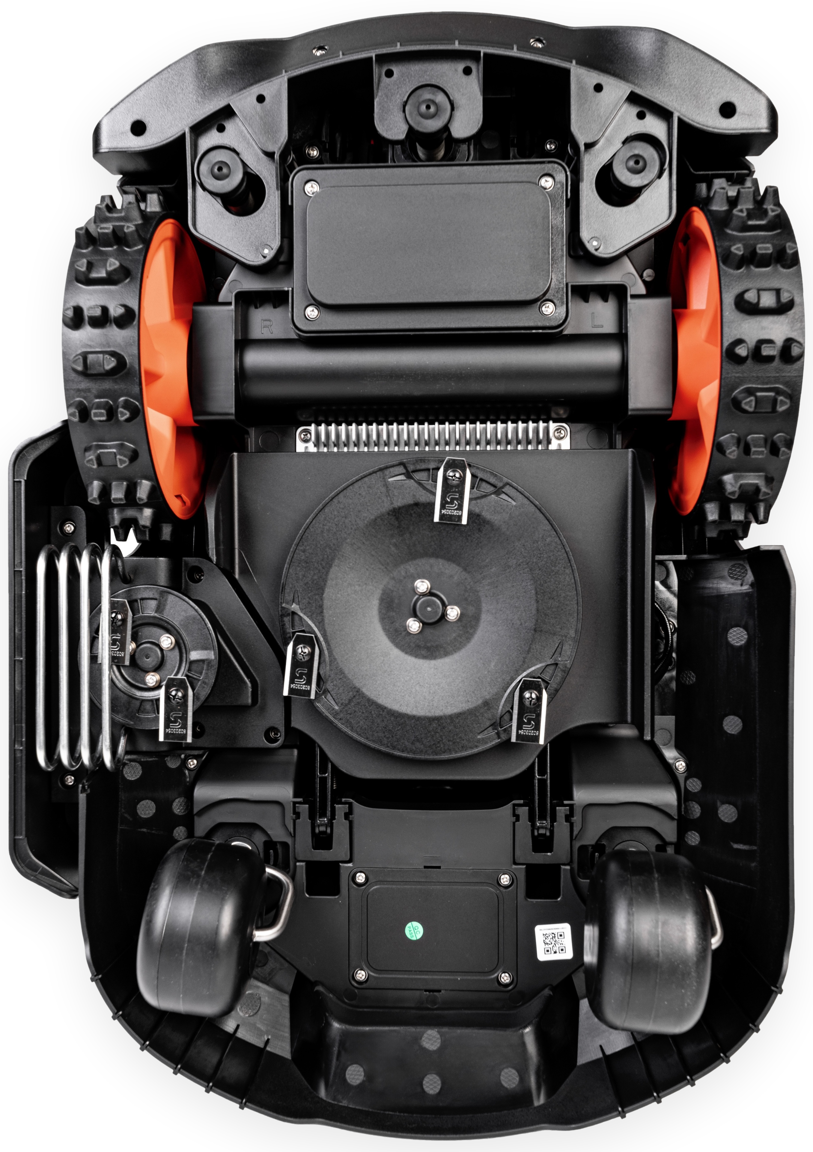 Niewielka masa własna (około 10 kg) ułatwia przenoszenie urządzenia, a jednocześnie jest optymalnie dobrana, aby zapewnić odpowiedni docisk do podłoża i skuteczne manewrowanie na trawniku. Wbudowane czujniki przechyłu i podniesienia zatrzymują natychmiast pracę noży po uniesieniu robota, co zwiększa bezpieczeństwo użytkowania.